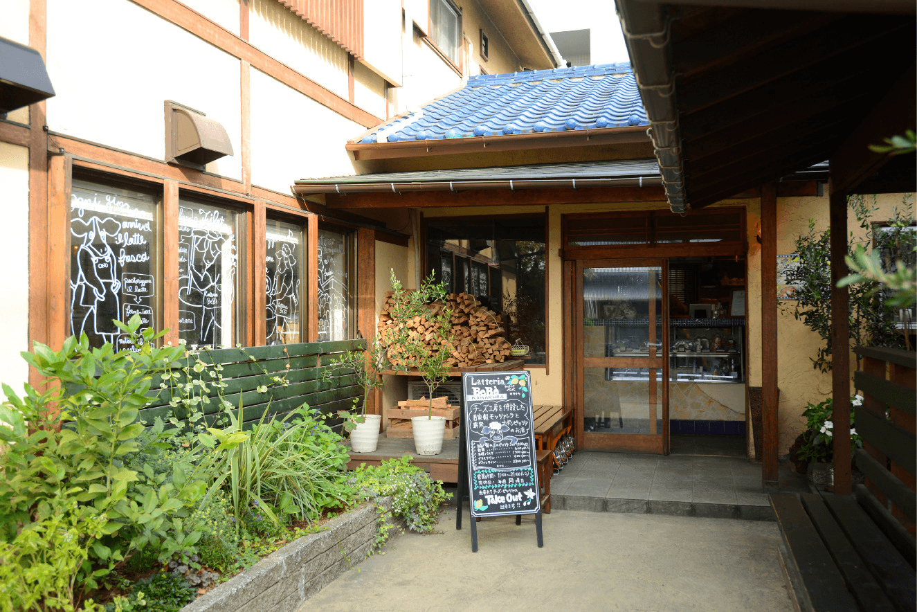 チーズ工房を併設した 手づくりチーズと 薪窯ナポリピッツァのお店 鎌倉駅徒歩2分。 駅前商店街から小道に入り、細路地を奥へ進んだ静かな一角に Latteria BeBè Kamakuraはあります。