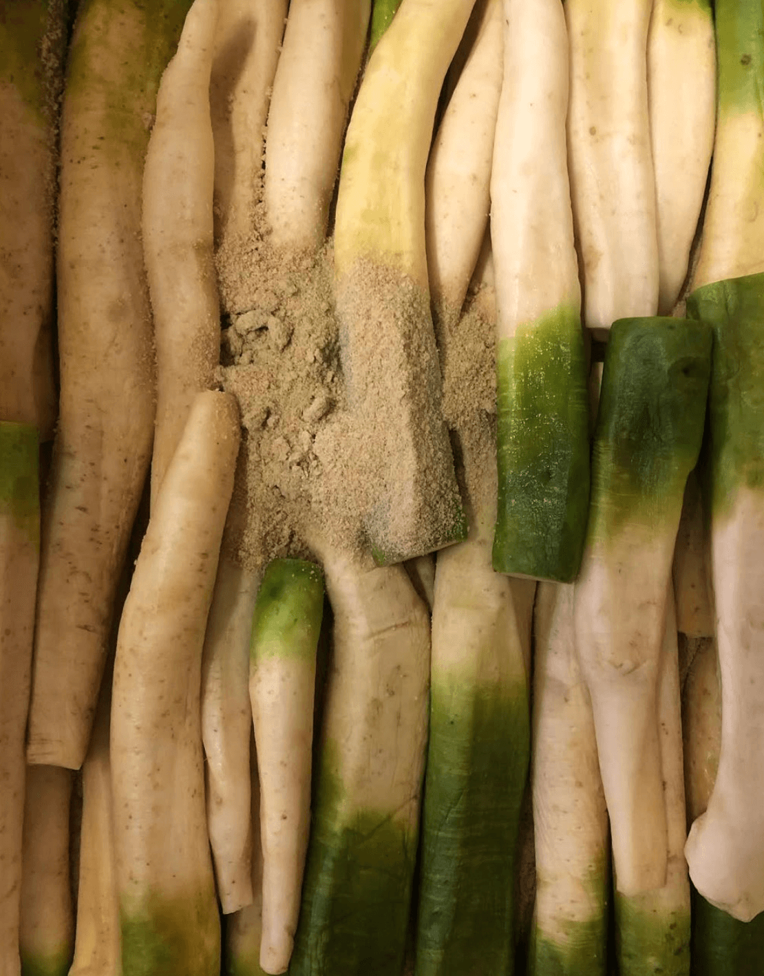 2018年に再び栽培が始まった秋田の伝統野菜「沼山大根」は、以前に秋田県横手市で育てられていた品種です。この大根は肉質がしっかりとしており、味が非常に濃厚で、焼いたり蒸したりすると、他の大根とは一線を画す独特の甘さとホクホクした食感が楽しめます。この大根を通じて、雪国特有の生活や伝統的な保存食である秋田の漬物「いぶりがっこ」やたくあん、切り干し大根などもお届けしています。